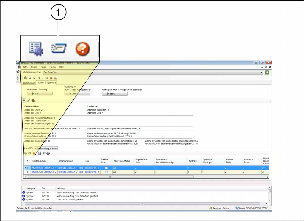 So führen Sie das Multiline Clustering durch 5.6.1 Ergebnisse der Cluster-Auftrags Optimierun g - Linien KPIs Ergebnisse der Cluster-Auftr agsoptimierung SIPLACE SiCluster Multiline SIPLACE SiCluster Multiline 67 Dialogf…