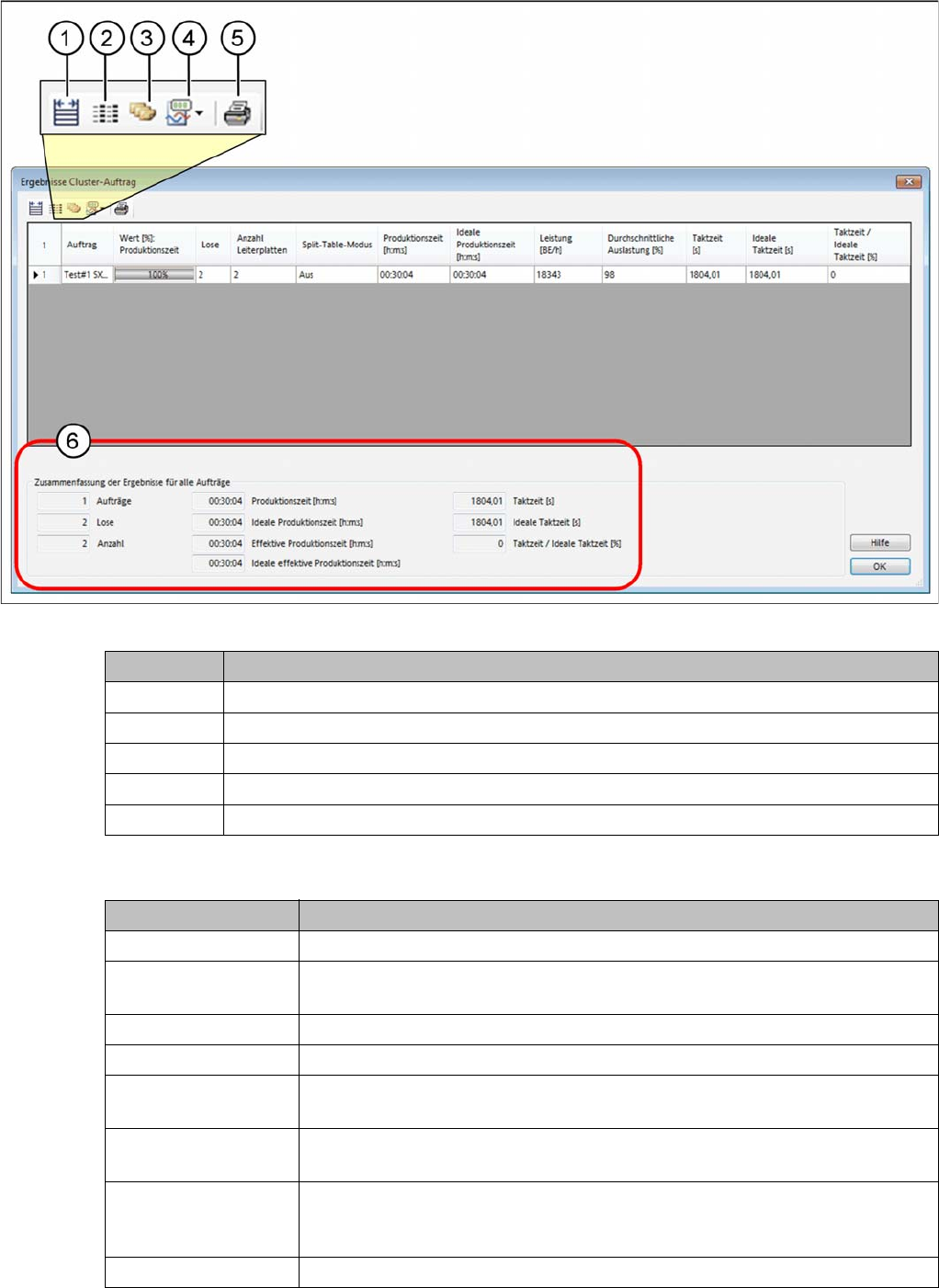 (6) Anzeige: Zusammenfassung der Ergebnisse für alle Aufträge