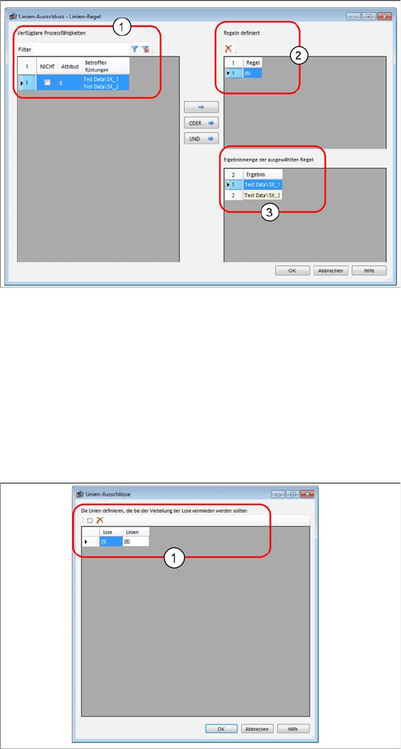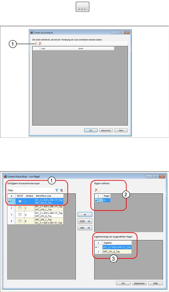► Das Dialogfeld Linien-Ausschluss Los-Regel wird geöffnet.