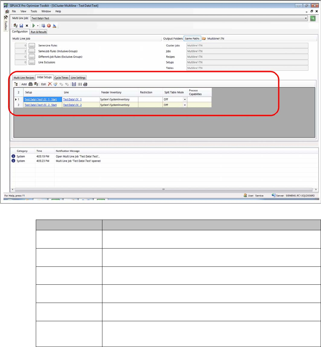 taken into account in the multi line job. SiCluster Multiline then distributes the boards/recipes across