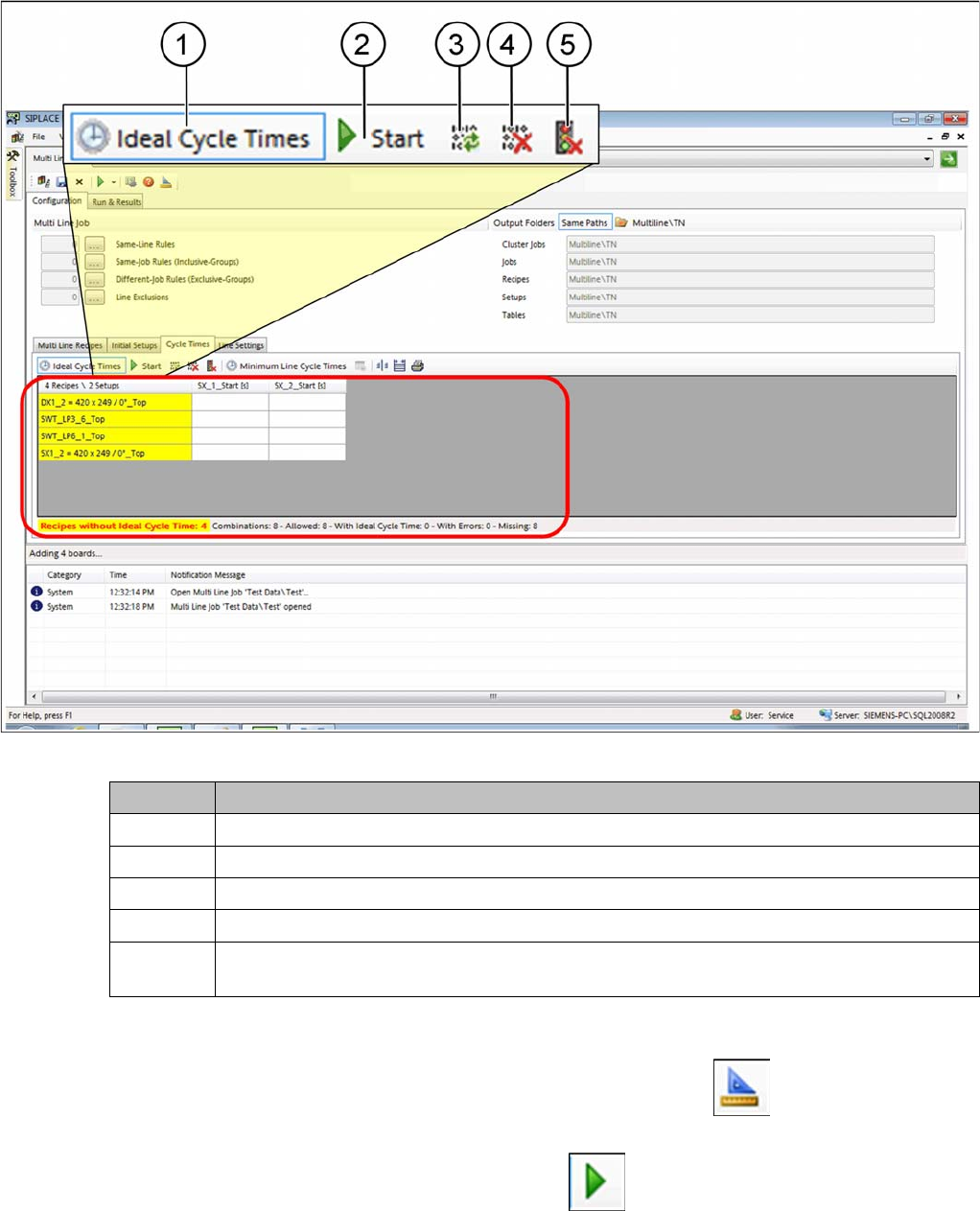 How to Configure a Multi Line Job 4.6.1 Initial Setups Added - Result Ideal Line Cycle Times SIPLACE SiCluster Multiline SIPLACE SiCluster Multiline 141 Creating ideal cycle times Tab: cycle times: creating ideal cycle t…