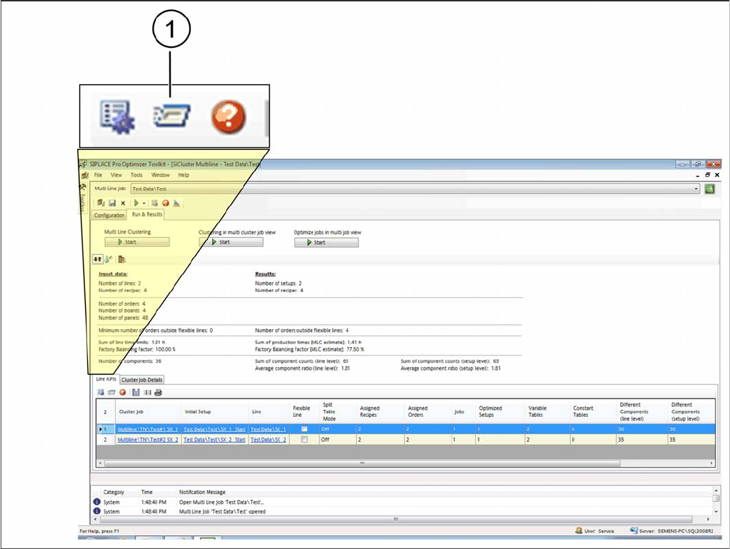 How to Perform Multiline Clustering 5.6.1 Results of the Cluster Job Optimization - Line KPIs Cluste r Job Optimization Results SIPLACE SiCluster Multiline SIPLACE SiCluster Multiline 159 Dialog box: results cluster job …