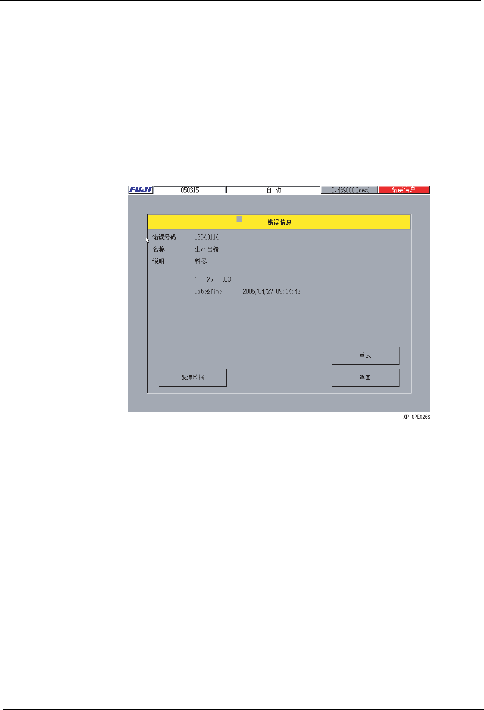 3. 根据 [ 错误信息 ] 画面的说明,在 [ 重试 ] 画面上进行元件数据或者魔板数据的修正或