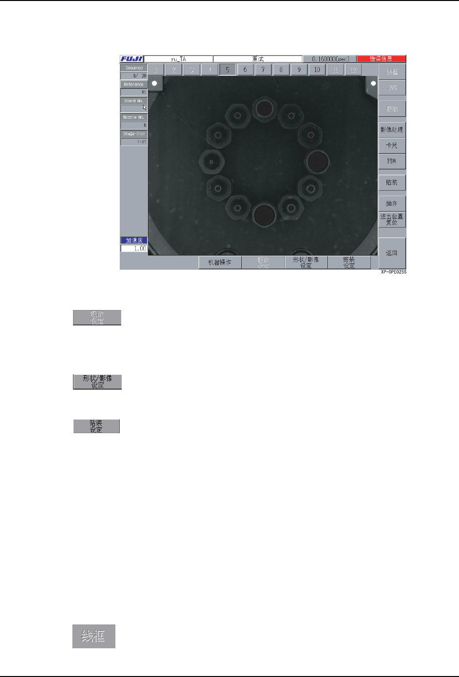吸嘴编号: 选择在画面上部的吸嘴编号的按键后,所选择的吸嘴对于吸取的元件可以