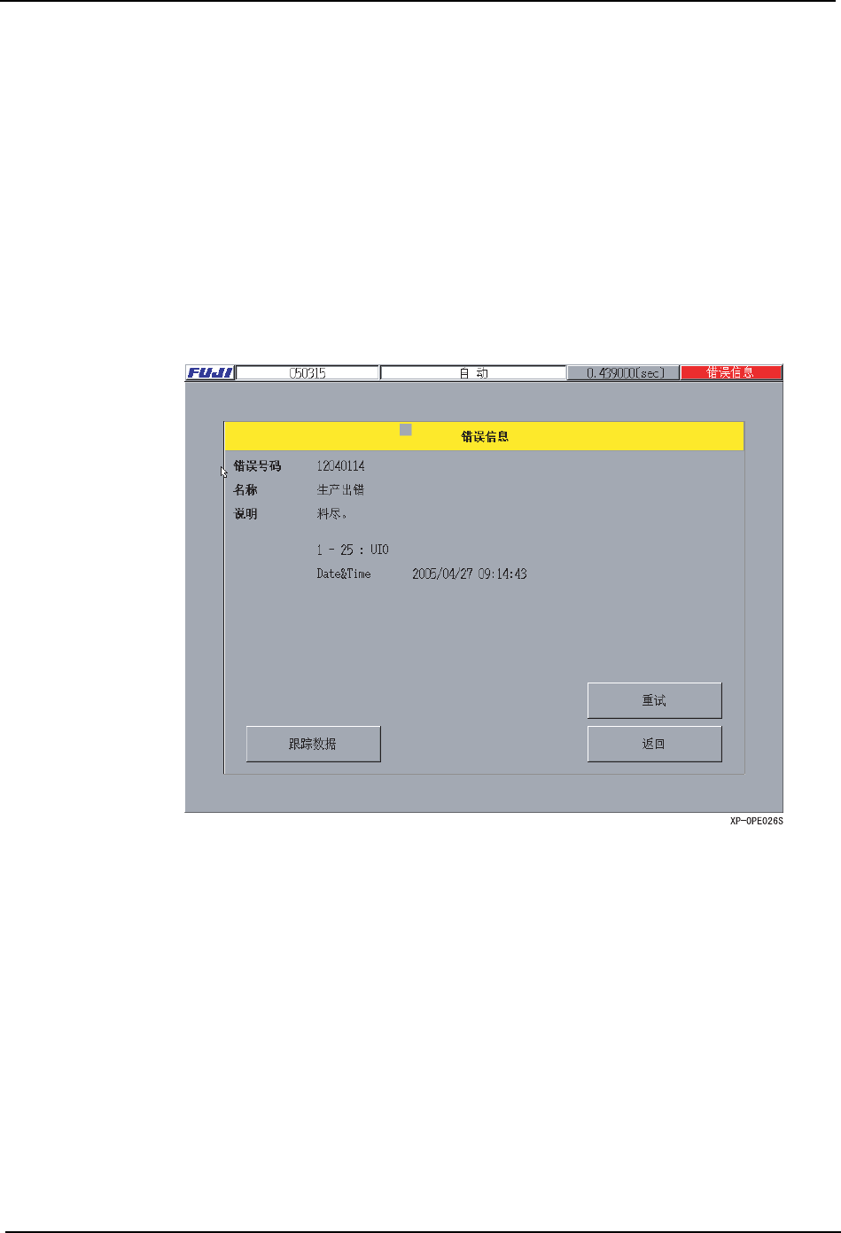 3. 不使用重试功能 (NonDispose 模式)时,按下 [ 返回 ] 按键打开 [ 错误信息 ] 画面。使