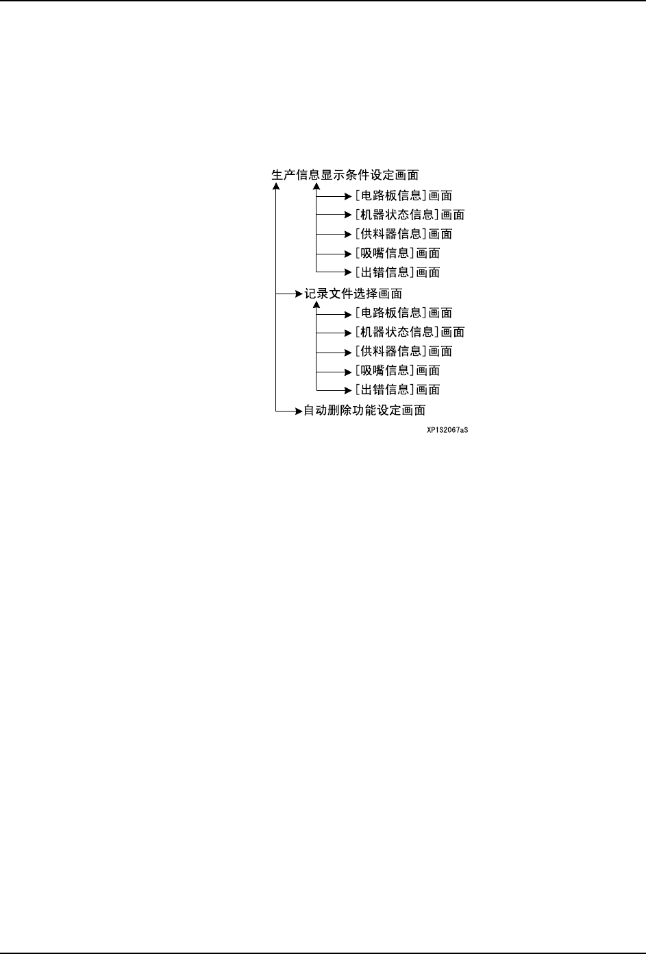 SYS-XP243-2.2S 3. 操作系统 XP-242E/243E 系统手册 105 生产信息显示条件的设定画面 数据说明 本画面可以进行展开生产信息的 时间范围的设定和选择程序。 使时间范 围有效的话单击 [ × ] 键,请将按键的显示变为○ 。如果不设 定时间范围时, 请重新选择此键使按键的显 示变为 ×。 选择程序时,从 保存在当前 /sd0/F UJI/USER/PRODUCT/( 文 件夹 ) 中的记录文件 中读取生产 程…