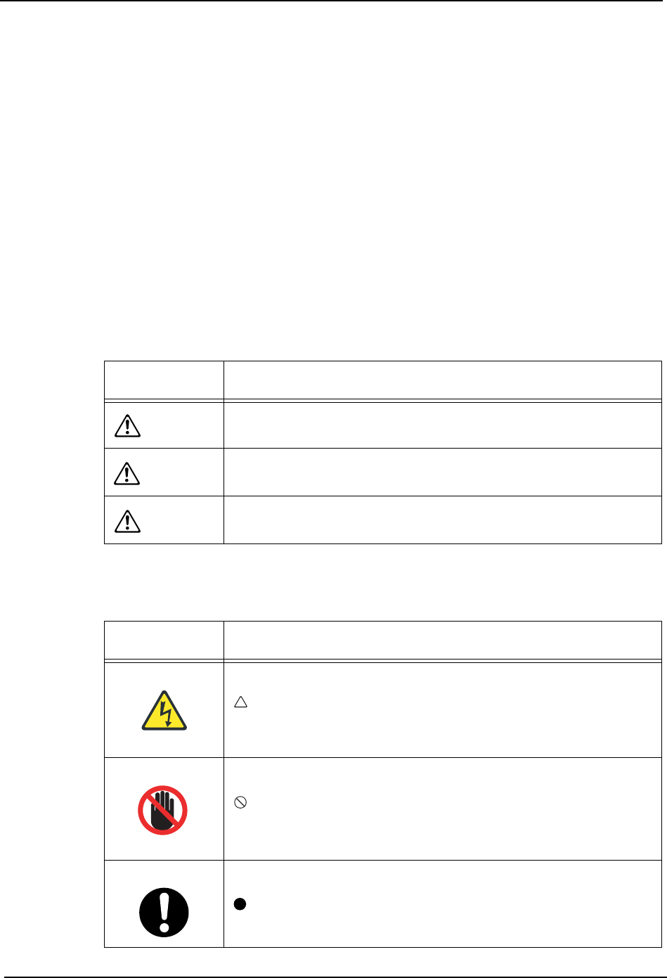 本书及其产品上的警告标识的注意说明使用了危险度的定义 (危险度的大小)以及图标记