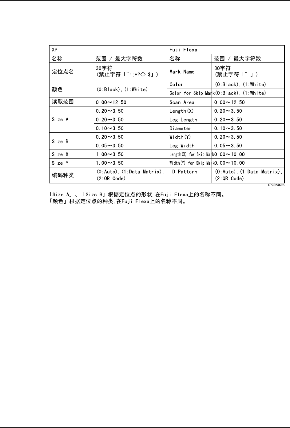 基准定位点数据的交错正方形的 Size B, 在 XP 机器上可以读取 / 保存,但是在 Fuji Flexa