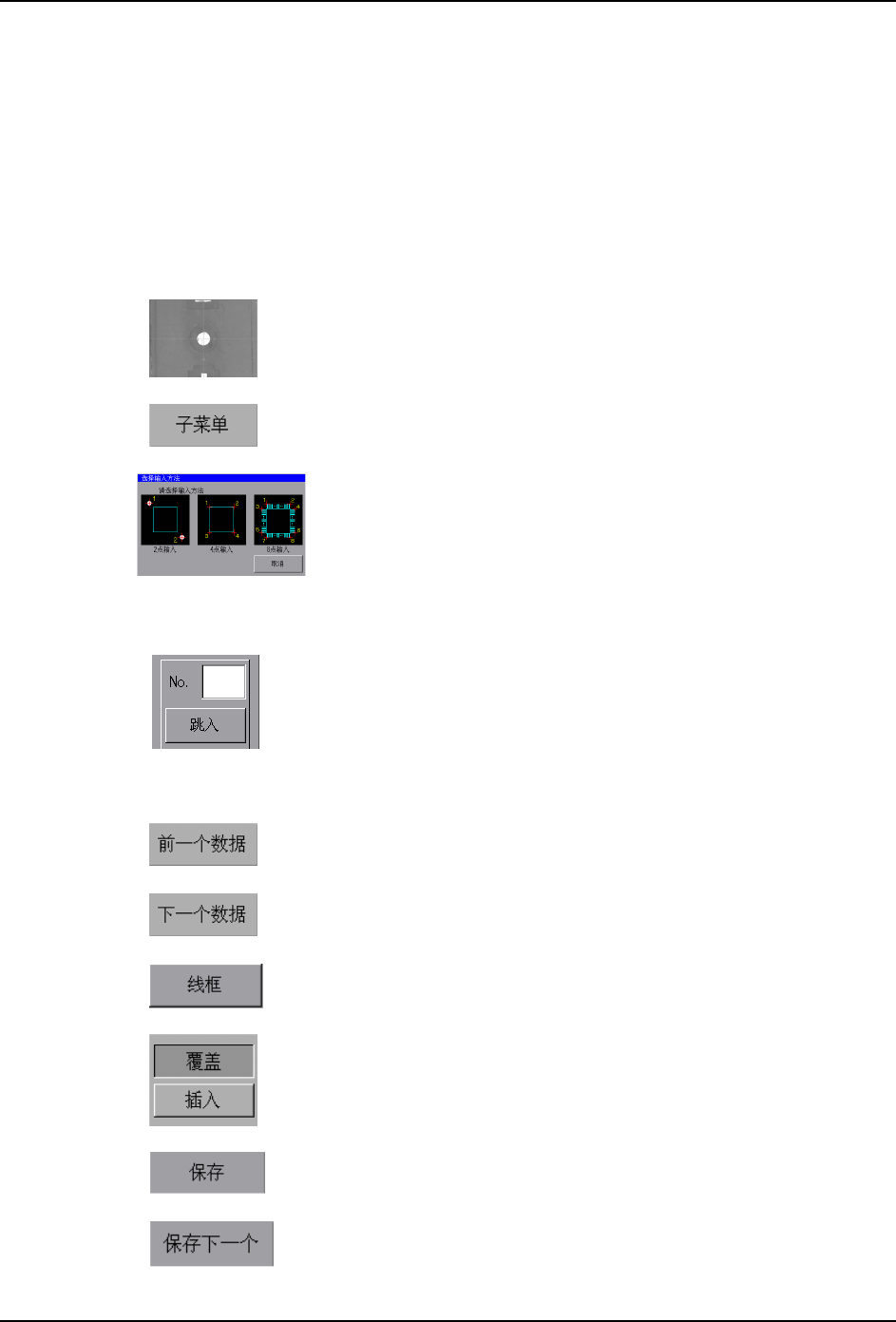 在 [ 顺序 ] 画面上按下 [ 指教 ] 按键后,定位点取入影像显示在触摸屏上。指教是移动机器