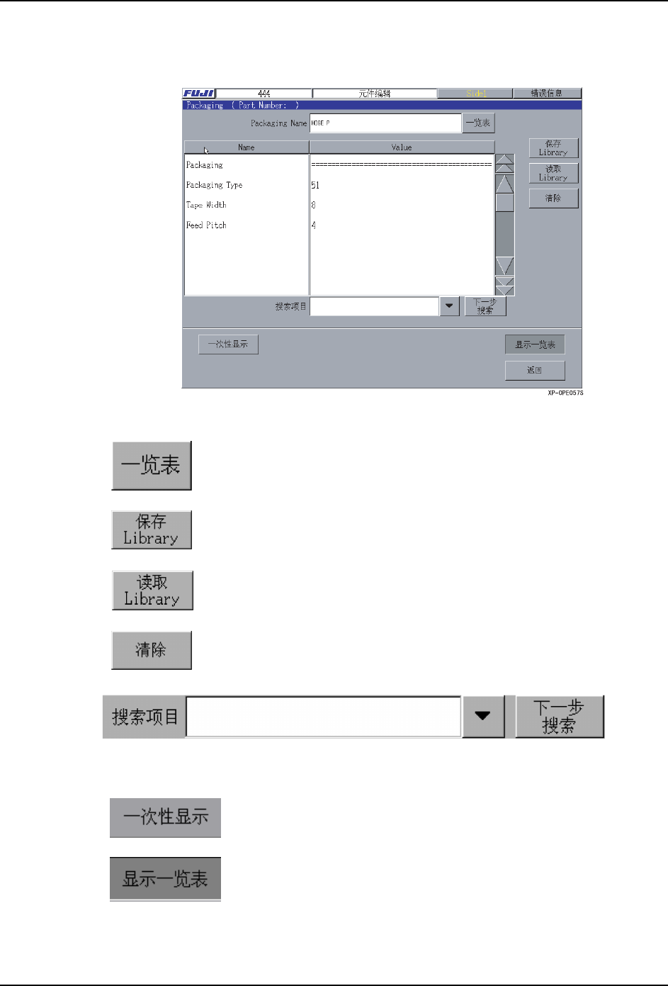 显示用编辑器打开的生产程序中使用的元件的 Package 一览表。