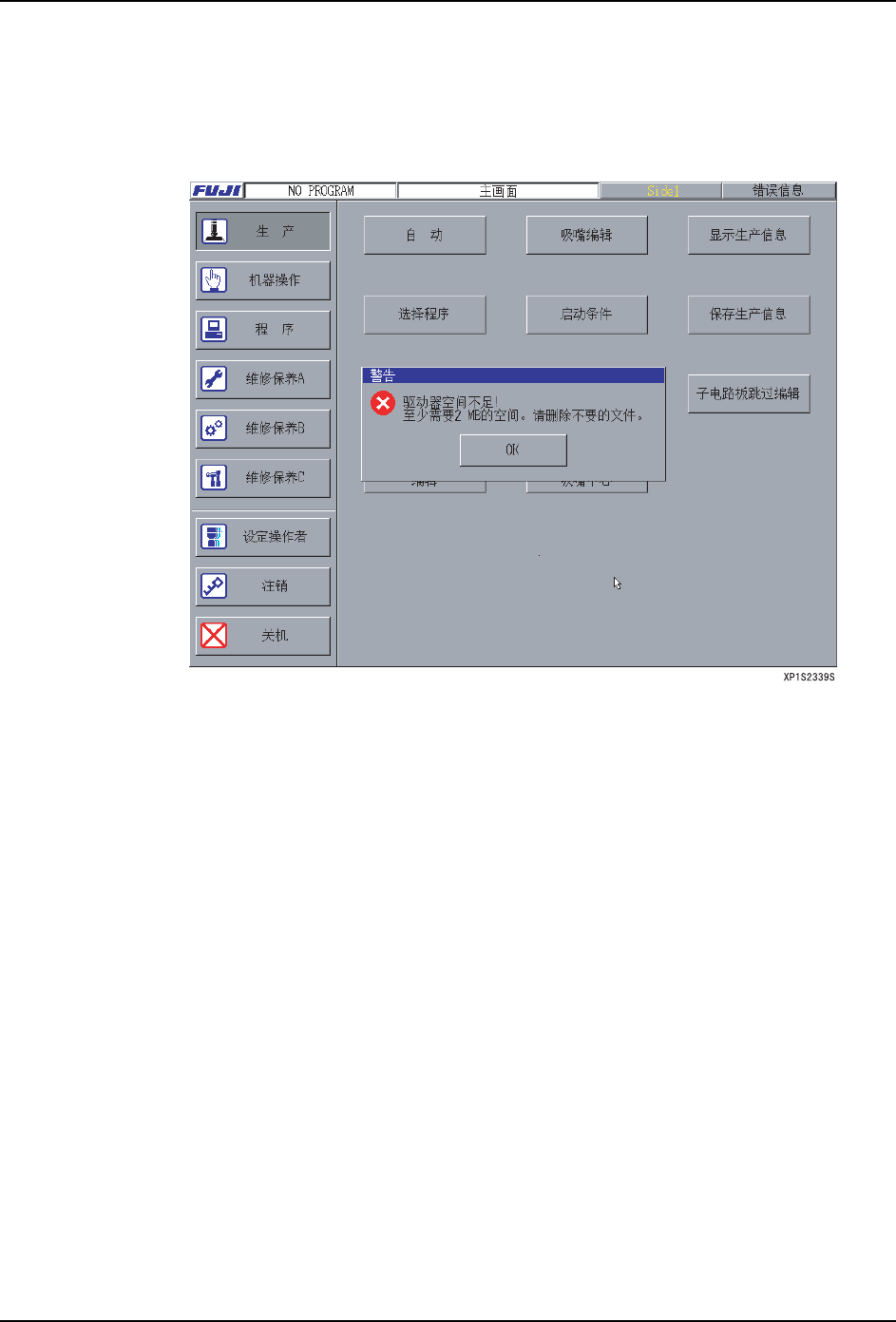 硬盘的剩余量少于 2MB 时,会显示出警告信息的对话框。