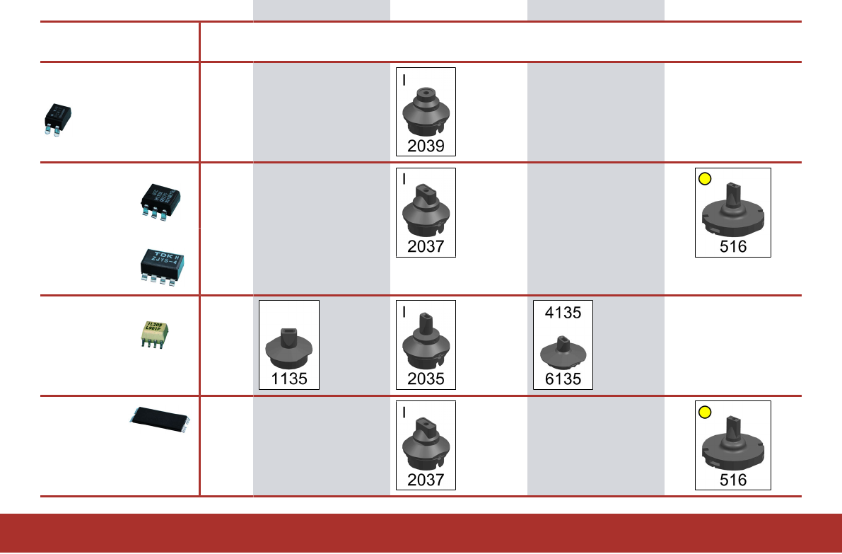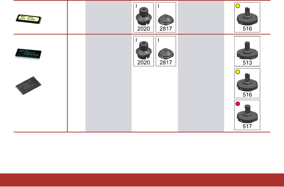 SO components C&P20A/M CPP C&P20P/M2/P2 Twin Head Component shape [LxWxH (mm)] CS file Nozzle types DIL 4 [4.8x9.7x4.8] 570 DIL 6 [8.6x10.0x4.4] 571 DIL 8 [9.3x10.0x4.4] 572 SO 8 _high_OK8 [4.9x6.0x3.2] 582 TSO…