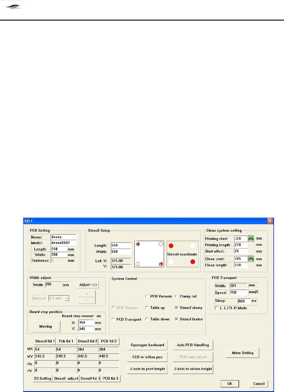 is used to set or amend the parameter settings of PCB board and squeegee pressure, transport,