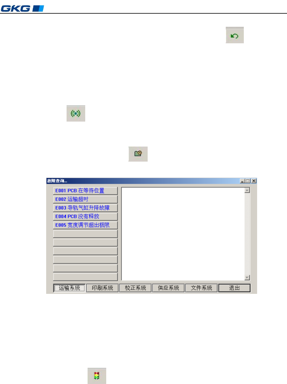 当机器发生故障时,可打开此对话框查找故障原因并排除。操作步骤如下: