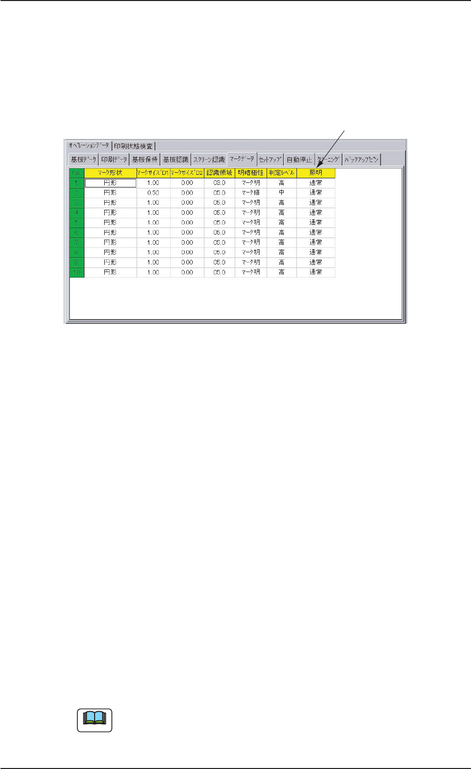 “オペレーションデータ”タブシートで“マークデータ”タブを押す
