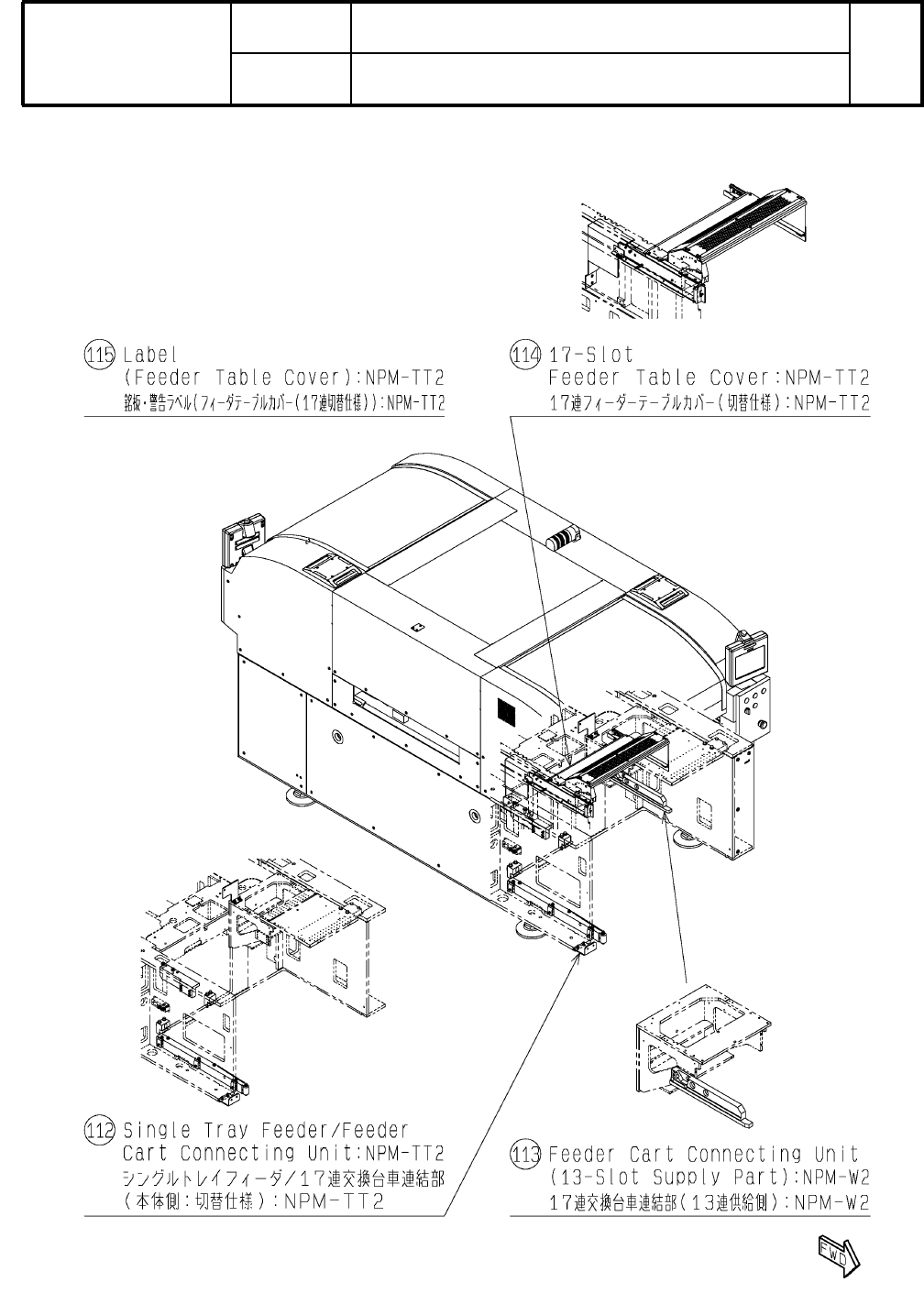 Kit Name Rank Q'ty 番号 Part No. キット名 品 番 数量 ランク 頁 Page No. 29 NPM-TT2 :プロダクションモジュラー NPM -TT 2:Production M odular キットリスト 製品品番 Model No. 製品名称 Model Name NM-EJM 1E KIT LIST 1 112 MTKA009119AA Single Tray Feeder/Feeder …