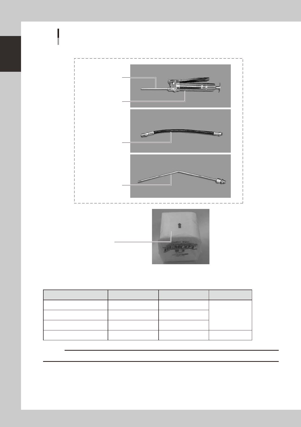 1-8 1 Maintenance Standard nozzle Cleaning wiper Grease gun set Lubricating and greasing tools Optional parts Grease gun Grease gun nozzle (flexible type) Grease gun nozzle (bent type) 53107-L6-00 n Lubricating and greas…