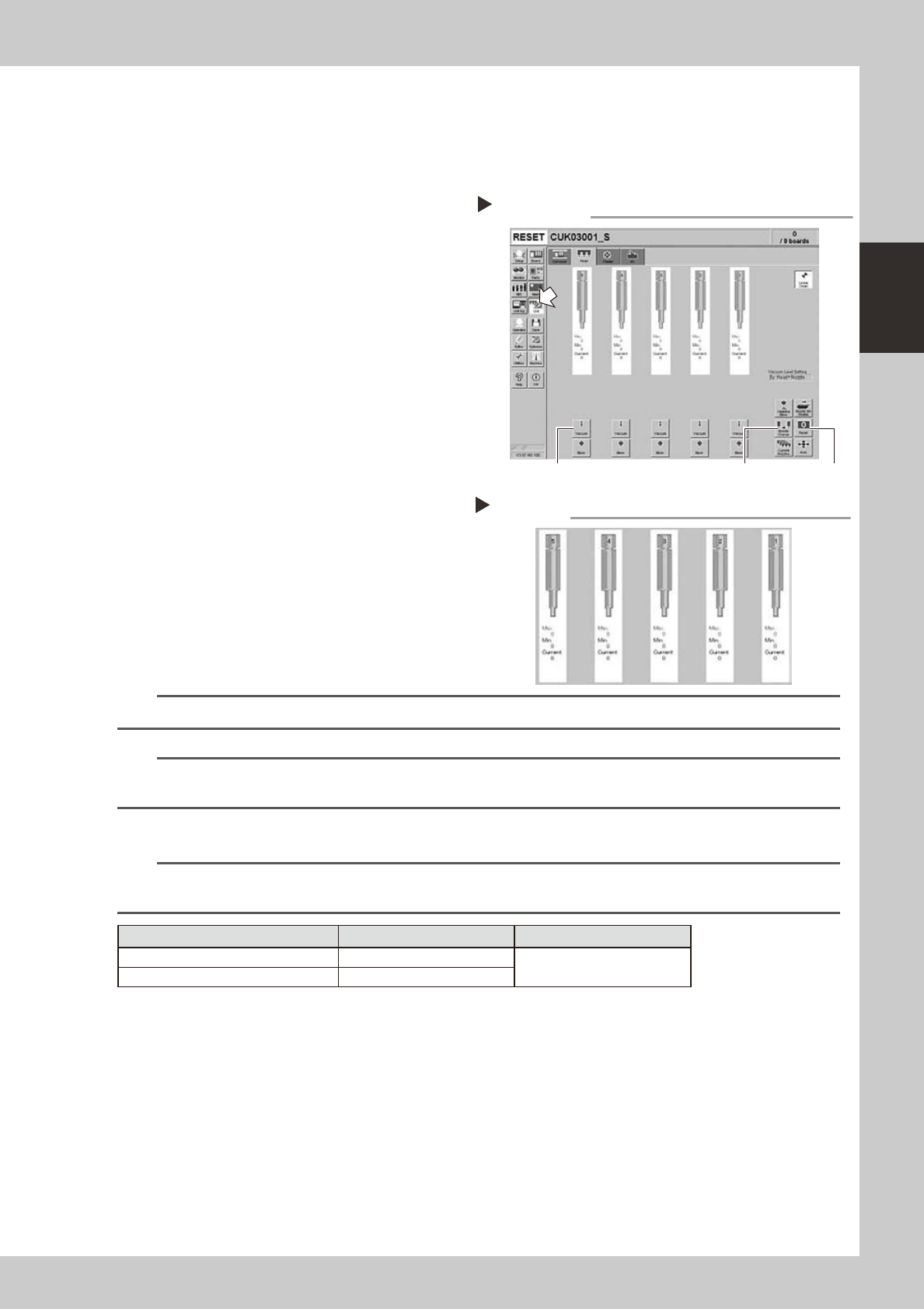 [Nozzle Change] button[Vacuum] button [Reset] button