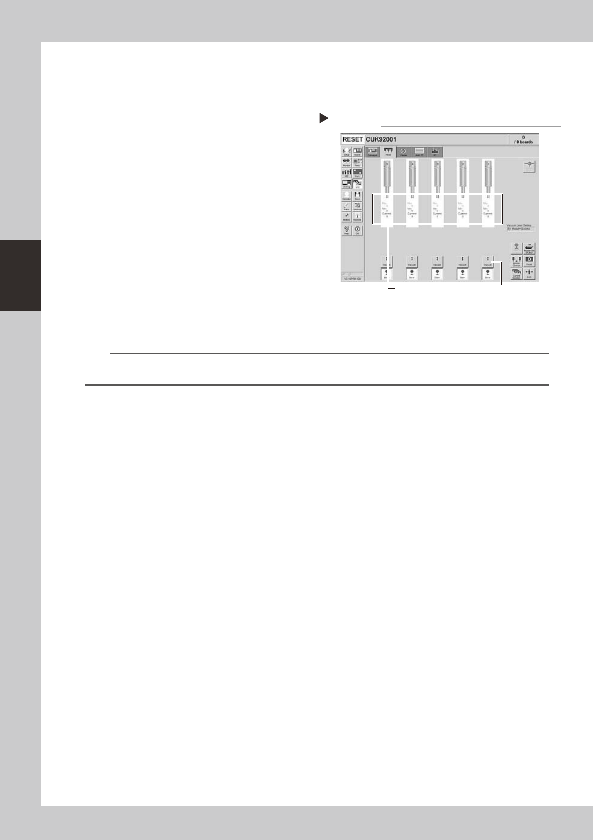 Aftercleaningthesplineshafts,checkthenegativepressure(vacuumlevel)generatedineachhead.