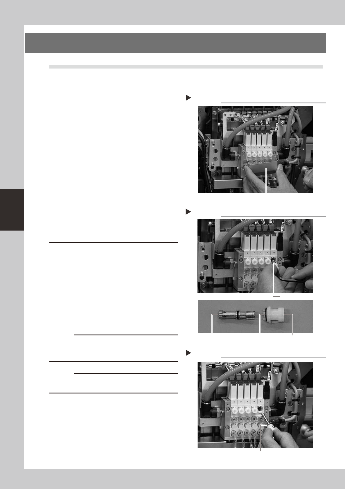 4-2 4 How to replace consumable parts 2. Ejector unit 2.1 Replacing an ejector bit 1 Shut off the air supply . T ur n the air supply/shutof f v alve inside t he machine lo wer left panel to the right, to stop the air sup…