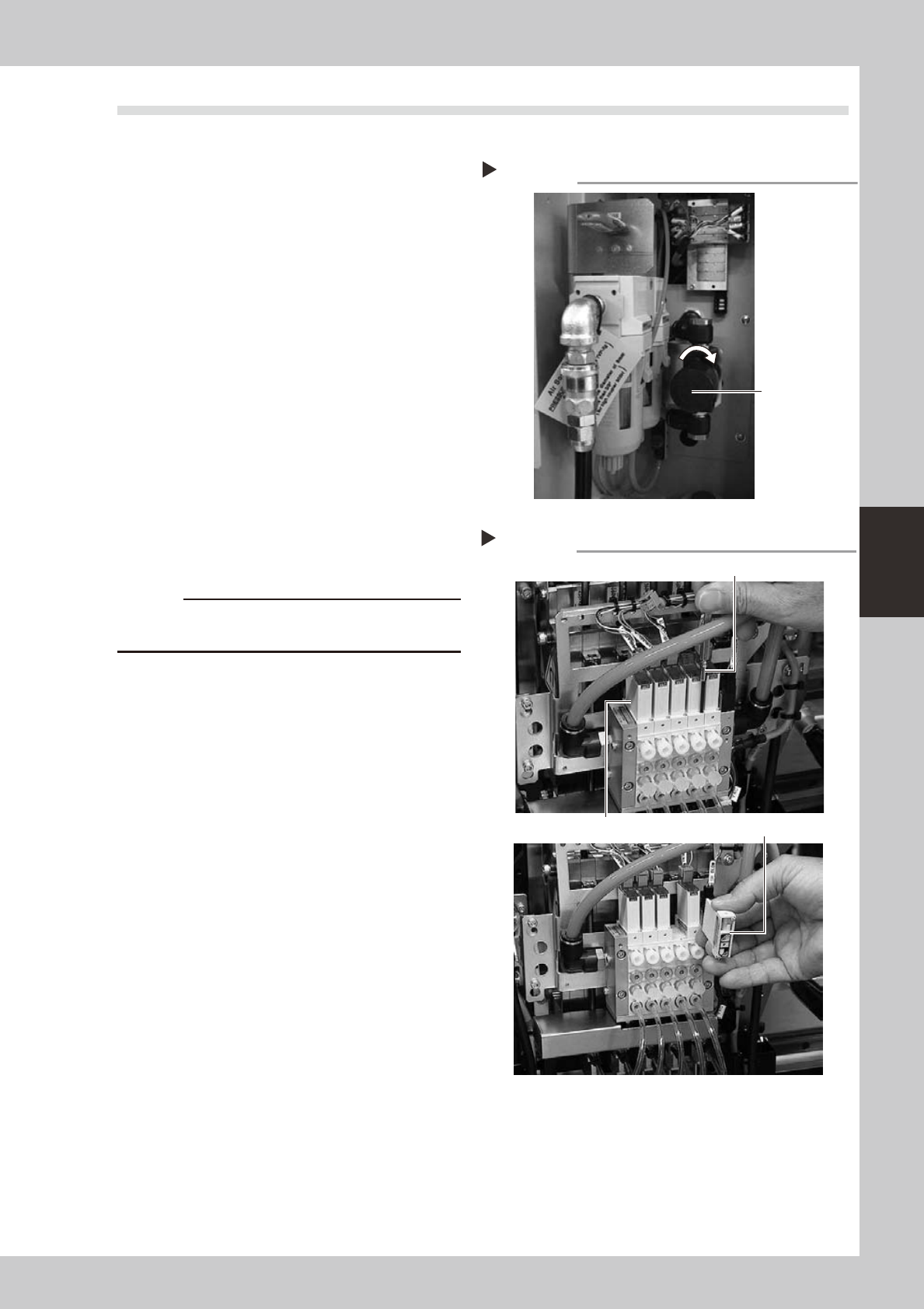 4-4 4 How to replace consumable parts 2.3 Replacing the cleaning blow valve 1 T urn off the air supply and the pow er to the machine. Quit the softw are and turn of f the machine pow er switch. Then turn the air supply/s…
