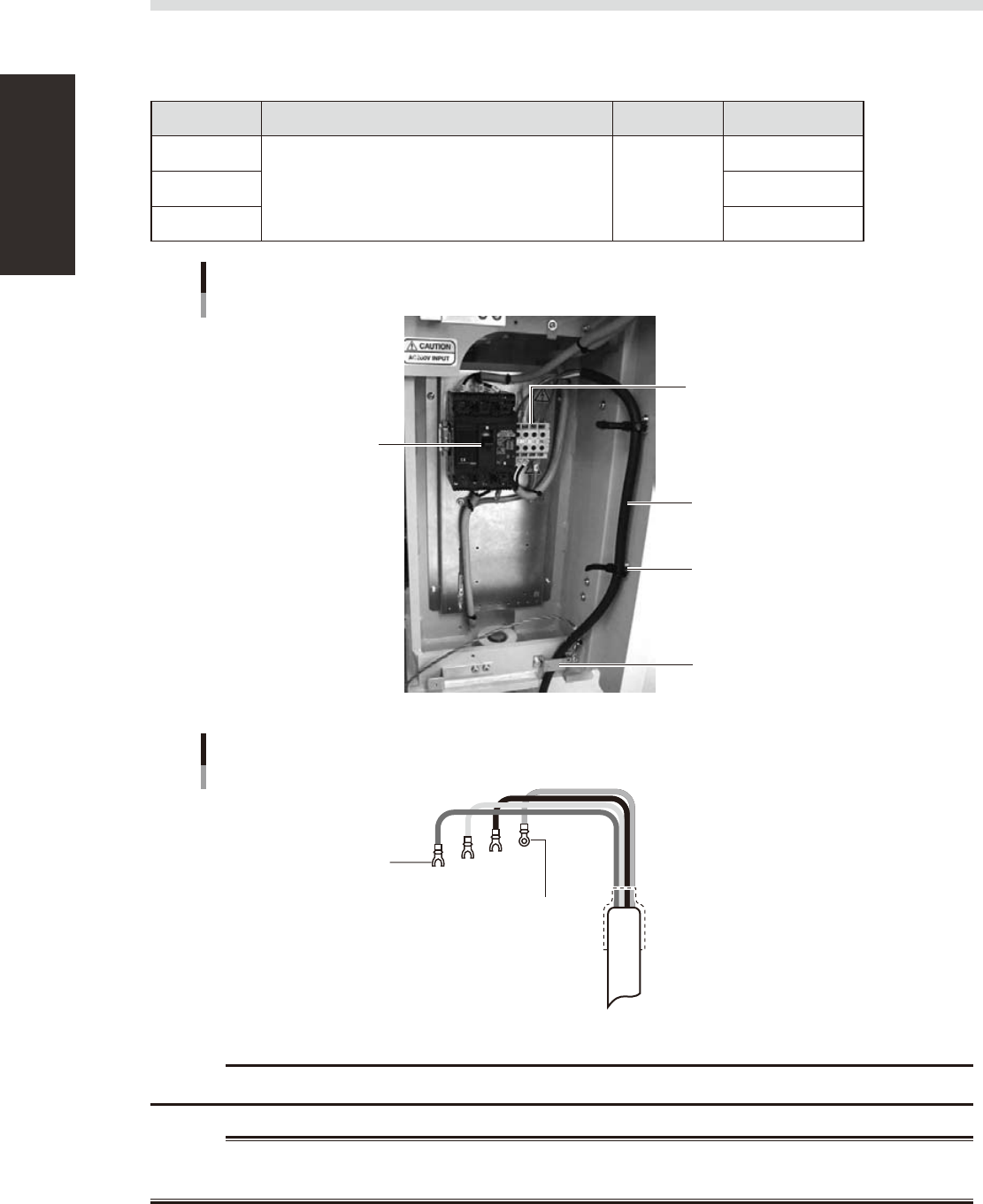A-2 Appendix 1.2 Power connection terminals Thepowerconnectionterminalsarelocatedinsidethelowerrightpanelonthefrontofthemachine.Connect thepowercableleadsasshownbelowtotheL1,L2,L3andground…