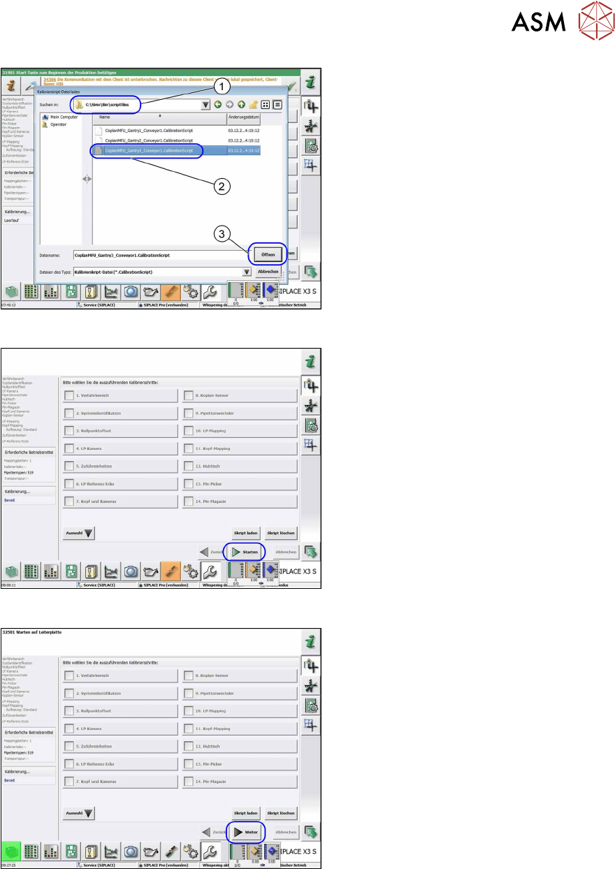 3 Installation 3.17 Commissioning with SW 70x 136 Assembly Instructions / Montageanleitung SIPLACE X-Series S 3D-Sensor 06/2020 Fig.90: Nozzle setting ► Pick up nozzles of type 519 (1) . ► Select the Start(2) button to…