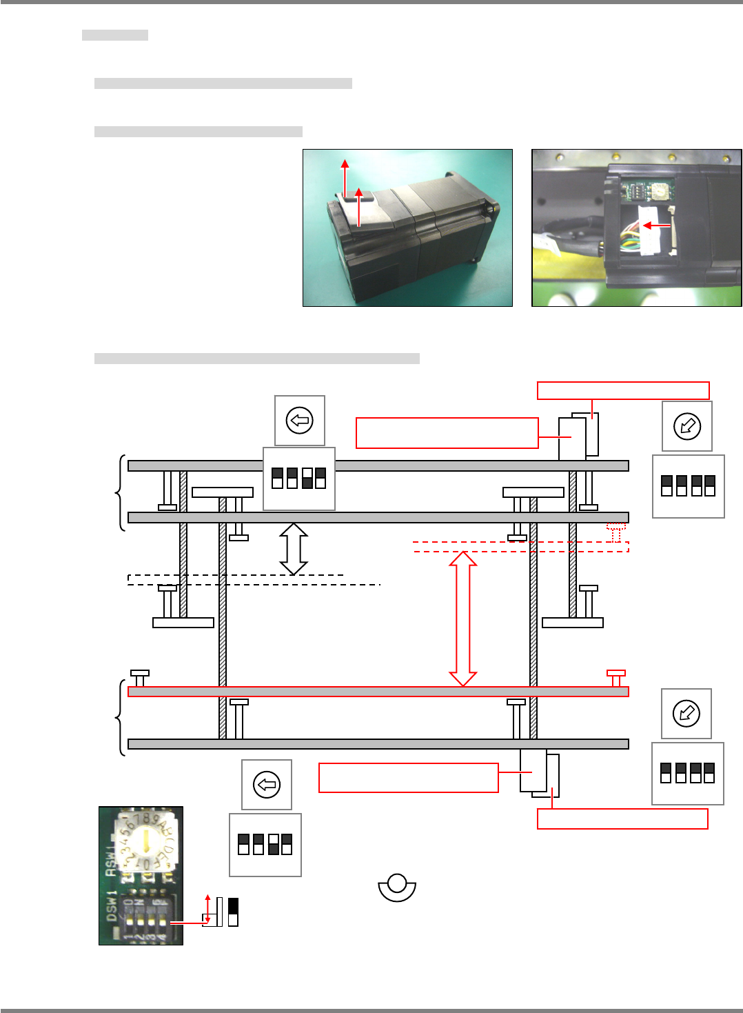 在每个电机的使用位置上,进行 DIP SW 和旋转 SW 的设定。(Fig. 3)