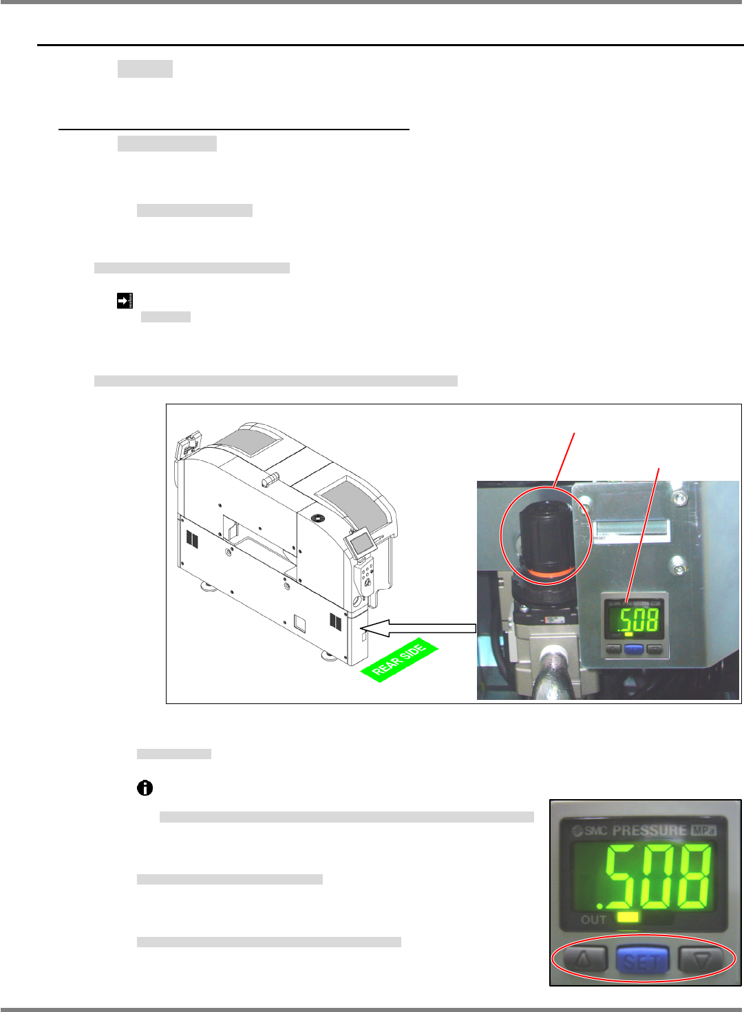 2. If the air pressure is not within the above requirement, turn the adjustment knob of the regulator to adjust