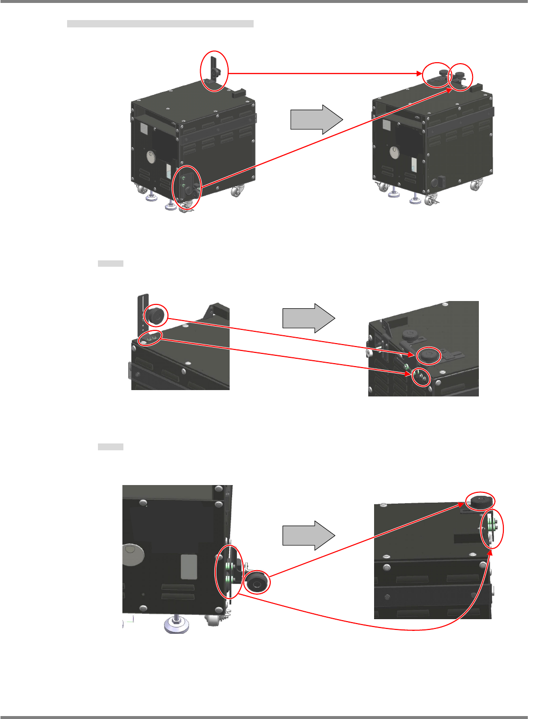 検査 BOX のブラケット A、およびブラケット B を収納時状態にする。