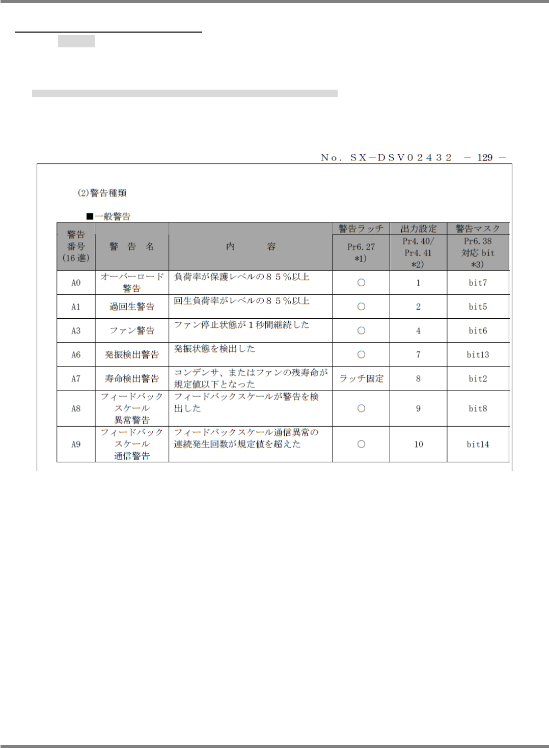 本サーボアンプは保護機能が動作する前に警告を発生し、事前に過負荷などの状態を確認することができます。
