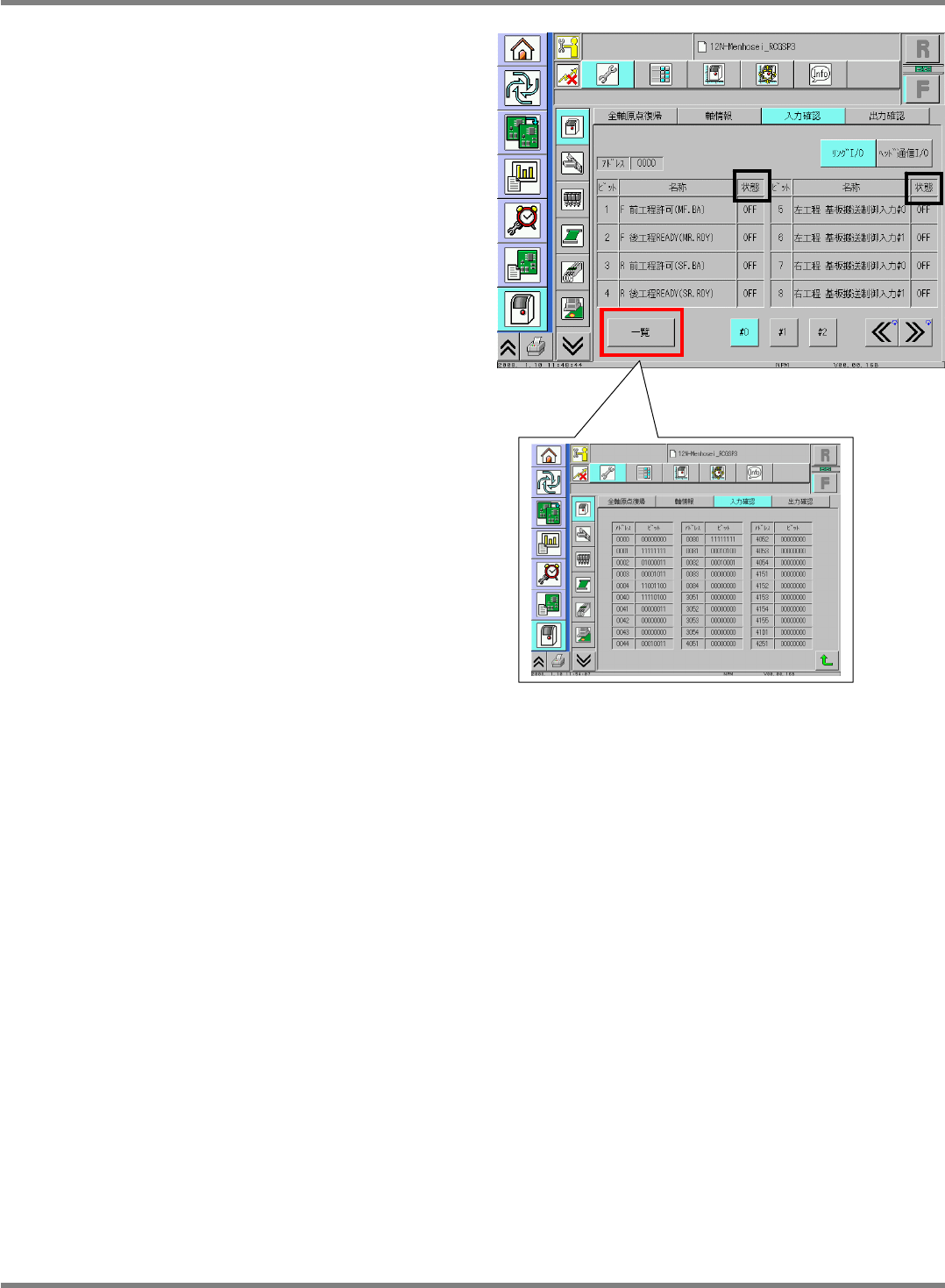 各センサ、各スイッチ類が正常な入力状態 (ON・OFF) になっているかを確認するために、その方法を説明します。