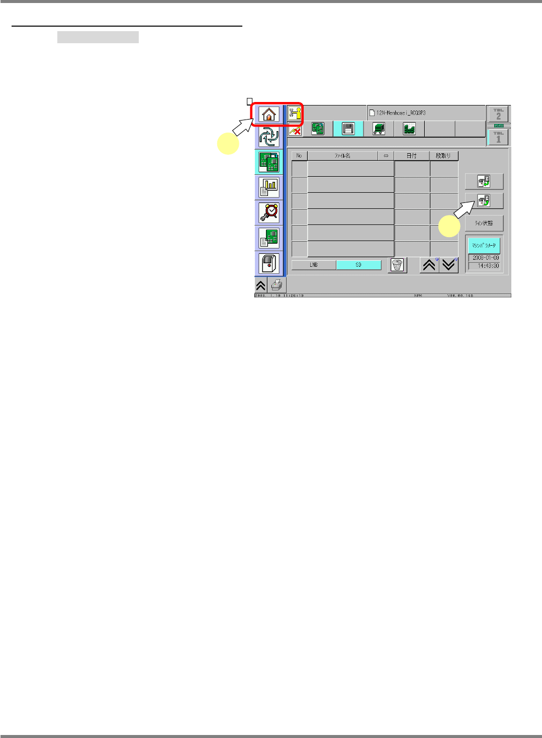 マシンシステムソフトは、SD カードからインストールされます。事前にシステムの入った SD カードを挿入してください。