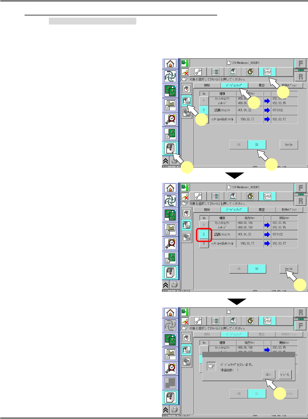バージョンアップ対象を選択、[VerUp] を押します。