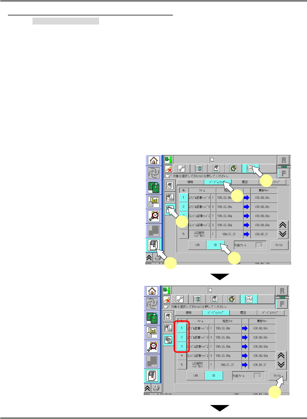 バージョンアップ対象を選択し、[VerUp] を押します。
