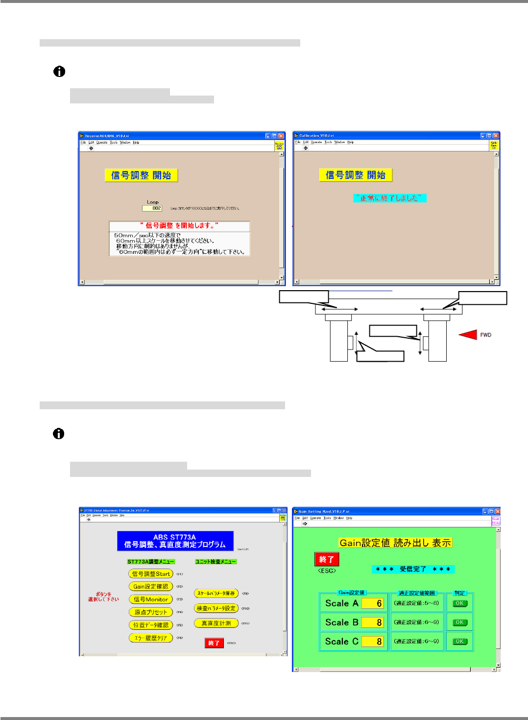 [Gain 設定確認] をクリックして、Scale A、B、C の判定を確認し、[終了] をクリックする。