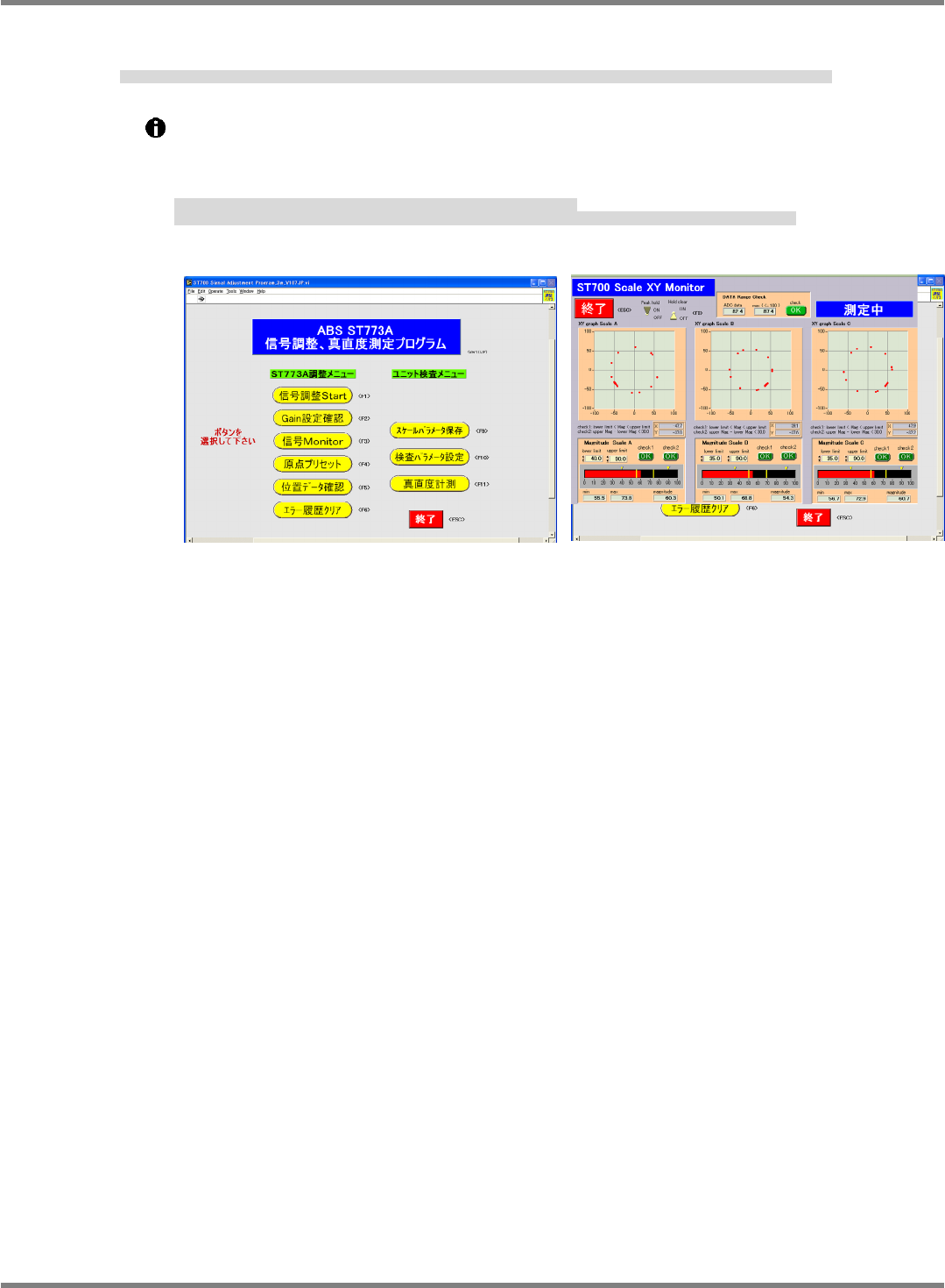 信号調整開始の画面が出たら、確認する軸を、‘信号を確認します’と画面に表示されるまで動かします。