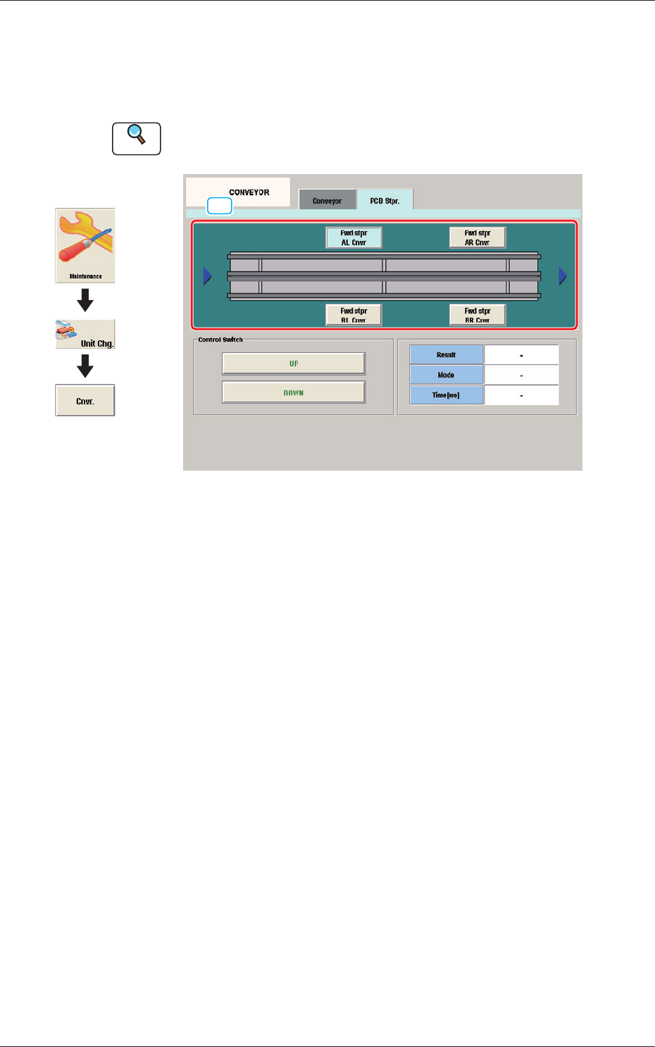 Using these buttons, the block in the lane where there is the PCB stopper to