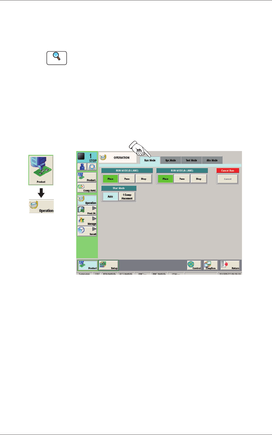 Set the "RUN MODE" on the "Run. Mode" tab sheet in the "OPERATION"