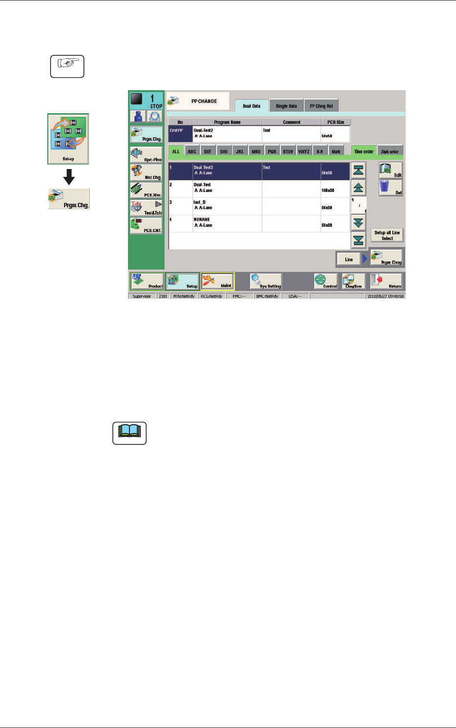(2) Select the program name to be specied as a current one (production model).