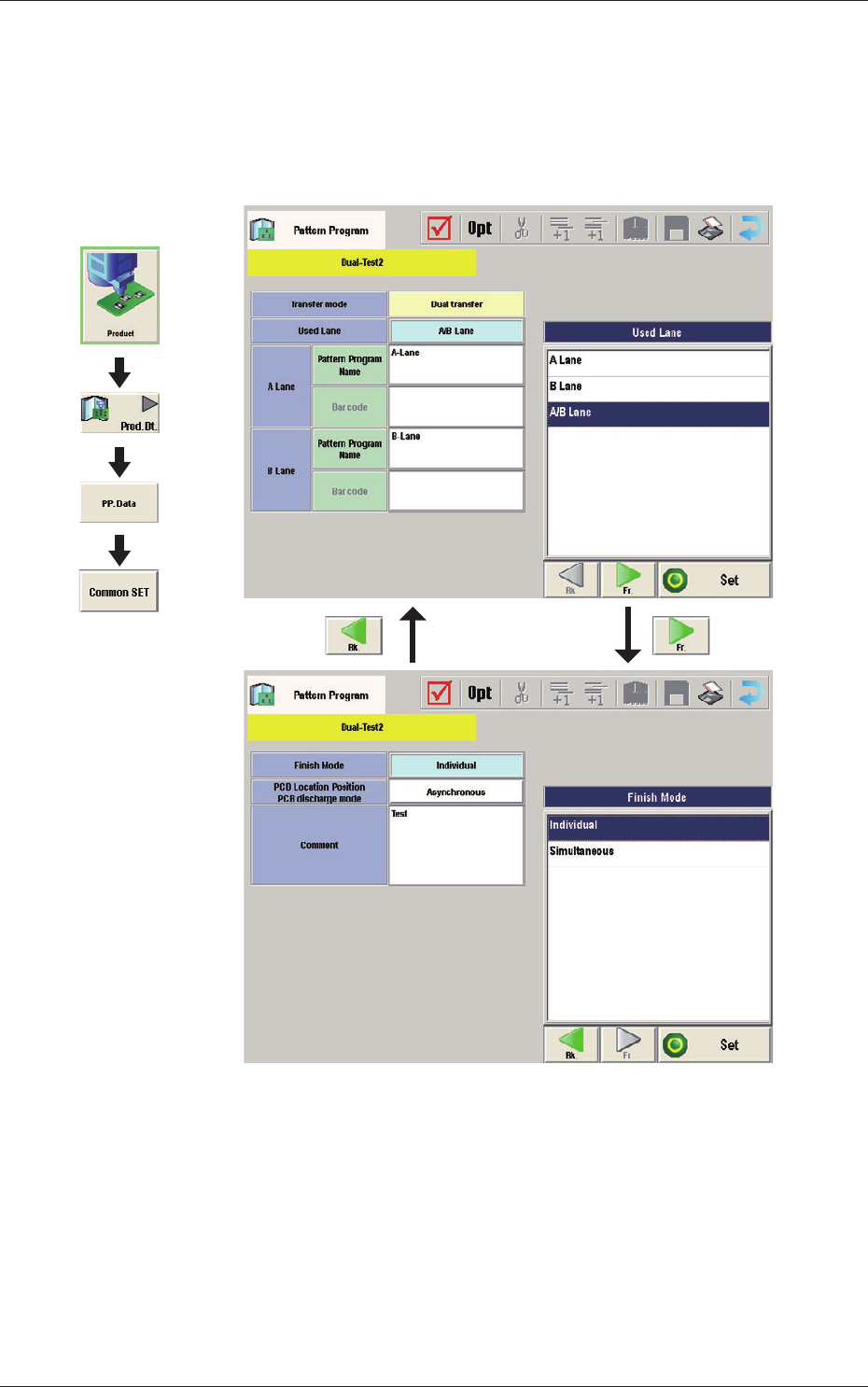 21 OM-1646 1005-001 12. Pattern Program 12. Pattern Program 12.1 Composition of Pattern Program The pattern program for dual transfer consists of the following data items. Pattern Program Pattern Program Name Common SET …