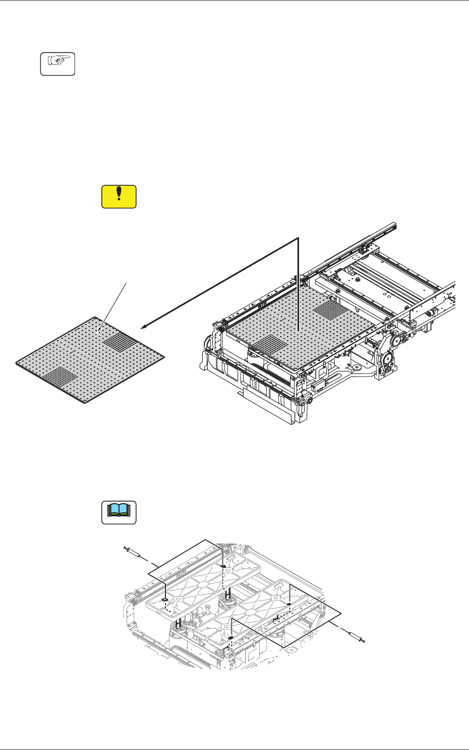 1 - 47 0606 - 001 4.2 滚珠丝杠副的注油步骤 4.2 滚珠丝杠副的注油步骤 Procedure (1) 对传送带和安装头进行原点复位。 (2) 上升支撑台。 (3) 切断装置电源。 (4) 打开开闭门。 (5) 取出支撑板。 Notice 如果支撑板碰撞传送带等,就会导致装置故障。 请慎重使用支撑板。 支撑板 Fig.4A45 (6) 从支撑台的开口孔支撑台的滚珠丝杠副用注油器进行注油。 Note 使用吸嘴为 No.…