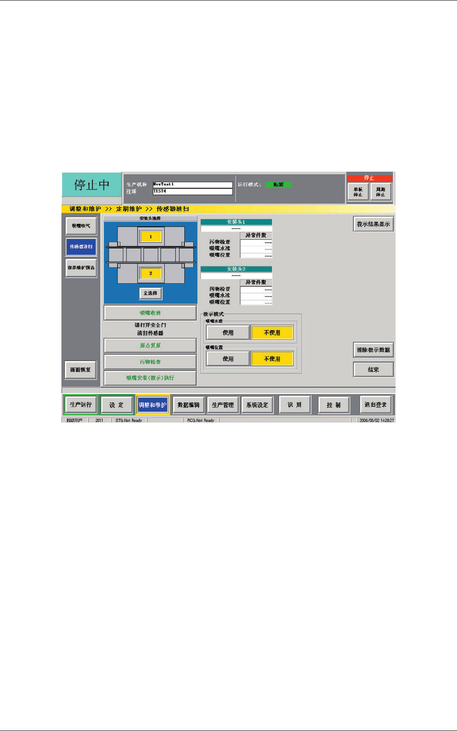 器 ) 清扫 ] 按钮,显示“传感器 ( 线传感器 ) 清扫”界面。
