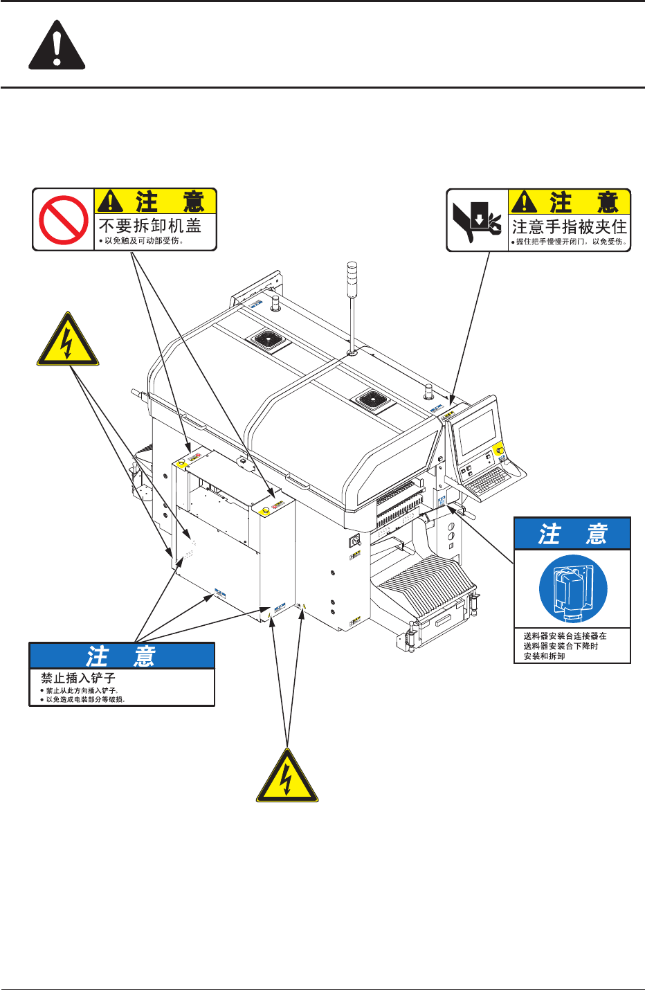 警告标签因破损无法看清楚内容时,请联系本公司服务部门更换新的标签。