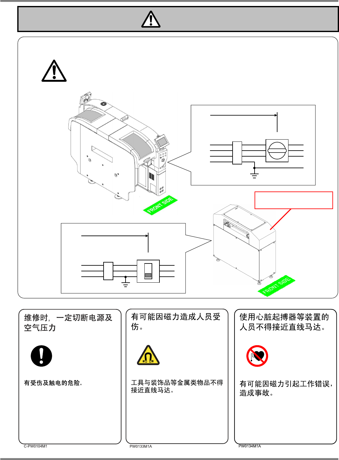 NPM Ü全注意事项 EJM9BC-SF-01N-20 Page S-9 EJM9B-AB01 维修时,小心触电 进行维修时,即使电源处于 OFF 状态,电源开关的线NÏ然 有供电,有ÿ能触电2 小心触电 M111B 警告 线 ( 电源被持续供给 ) L1 L2 L3 PE 终端 电源开关 线 ( 电源被持续供给 ) L N PE 终端 电源开关 EJM9B-AG02 LNB ( ) HUB �…