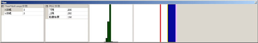 Range Range Range Range 计算参数: a) X 邻域:设定 X 方向做均值运算 的像素个数 b) Y 邻域:设定 Y 方向做均值 运算的像素个 数 判定参数: a) 上 限:亮度最大 值( 0~255 ) b) 下限:亮度 最小值( 0~255 ) 计算方法: 先 X 邻域和 Y 邻域做均值运算 后,再计算检 查窗口内部像 素亮度最大值 。结果符合判 定参数的范 围时,判定结 果为 OK 。反之,判 定结果为 NG…