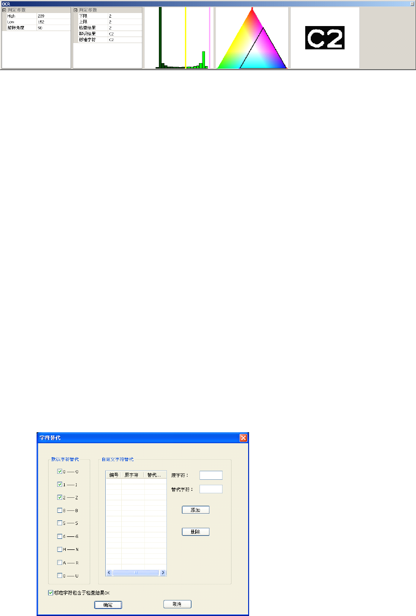 OCR OCR OCR OCR 计算参数: 亮度参数( 可用鼠标通过 直方图来设定 ) : a) 亮 度上限( High ) :设定 最高亮度值( 0~255 ) b) 亮度下限( Low ) :设定最低 亮度值( 0~255 ) 颜色参数( 可用鼠标通过 色彩图来设定 ) : c) 红 色上限:设定 红色最大值( 0~173 ) d) 红色下限: 设定红色最小 值( 0~173 ) e) 绿 色上限:设定 绿色最大值( 0~173 )…