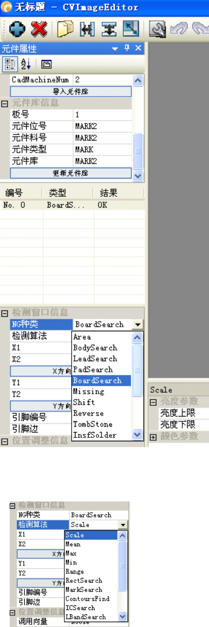 ( 9 ) 在检查窗口列表中激活需要进行选择算法的窗口,检测算法栏选择