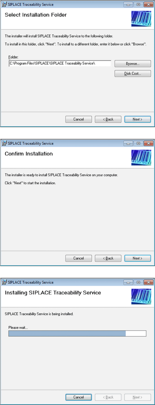 Installation of Trace Service and Monitor Trace Service 4.2.1 Installation 20 Installation Manual SIPLACE Traceability 5.0 ► Now specify the folder in which you wish to install the application. The default folder is C:\P…