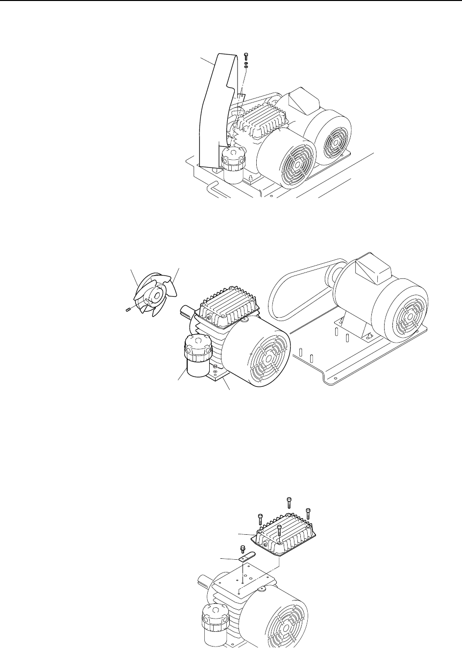 4 Remove the pulley and the pulley fan, then remove the vacuum pump from the